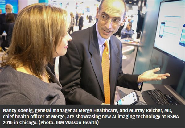 2015年,IBM以10亿美元收购了医学影像软件公司Merge Healthcare,计划与旗下“沃森健康”部门合并。所以这次会议上,两位共同亮相。12月1日,IBM公司“沃森健康”和Merge Healthcare在RSNA年会上介绍了医疗影像领域机器学习和人工智能的几种新技术。